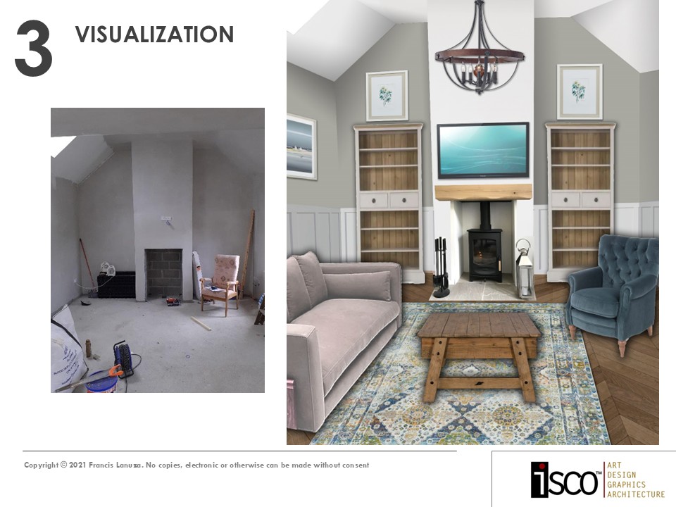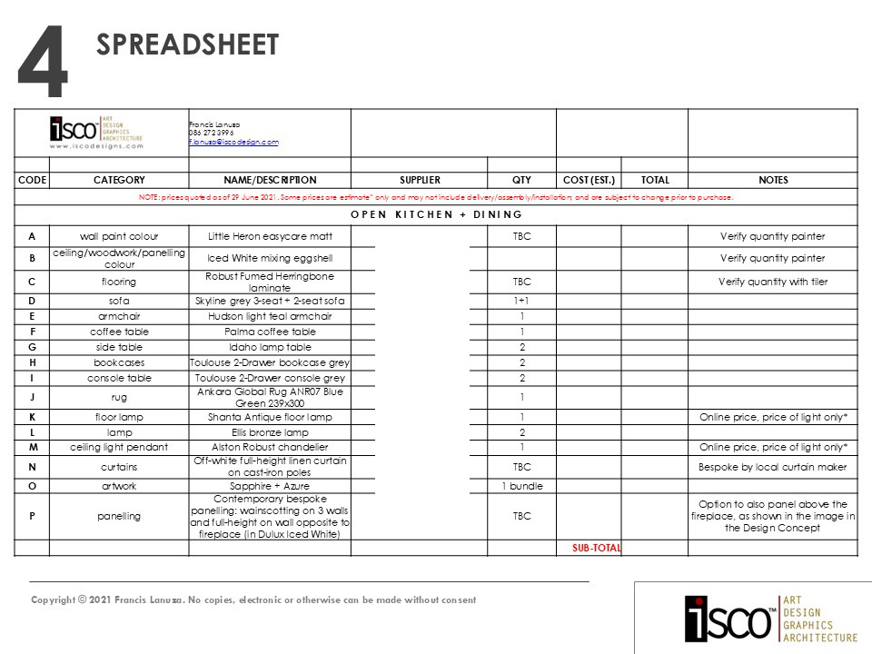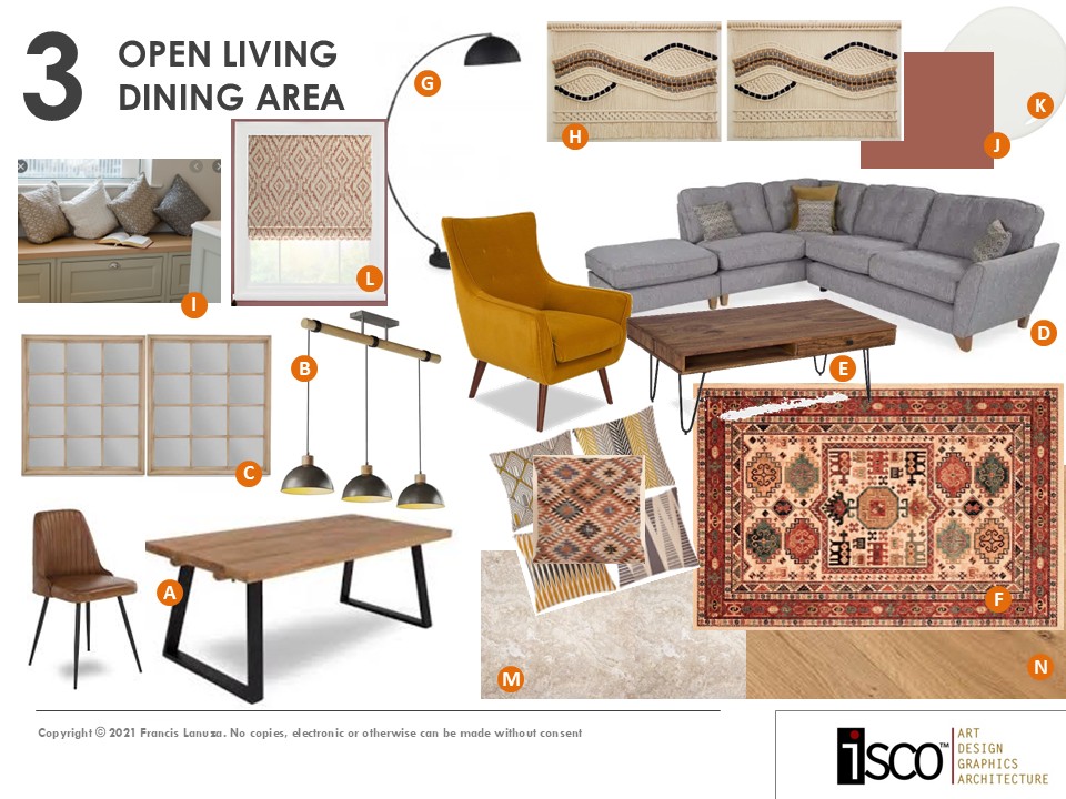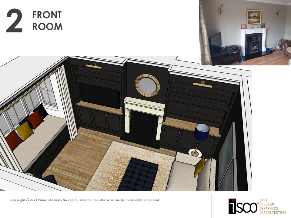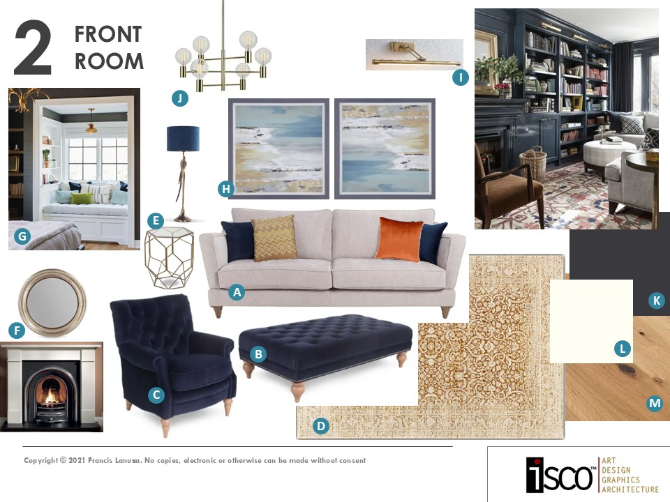 The project spans the entire ground floor of this Co. Cork suburban home. The contrast between the cosy, library-style Front Room as compared to the light and fun Open Kitchen and Living Room is apparent, yet there is a timeless thread in the choice of furniture and decor that allows for a connection between all the spaces. The floor plan also shows ingenious ways of incorporating built-in cabinetry to optimise the use of all corners of the rooms. All the recommended items are available in Cork City, making it easy for the owners to execute the design.